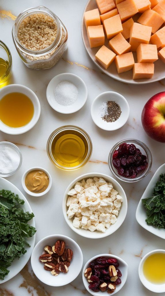 Quinoa is a seed that cooks like a grain, and it soaks up flavor from the dressing. Roasting sweet potatoes caramelizes their natural sugars, which balances the tangy dressing. Massaging kale breaks down its fibers, making it tender instead of tough.