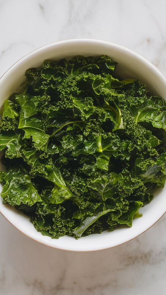 Place 2 cups chopped kale in a large bowl. Drizzle with a tiny splash of olive oil and massage with your hands for 1–2 minutes until softer and darker green.