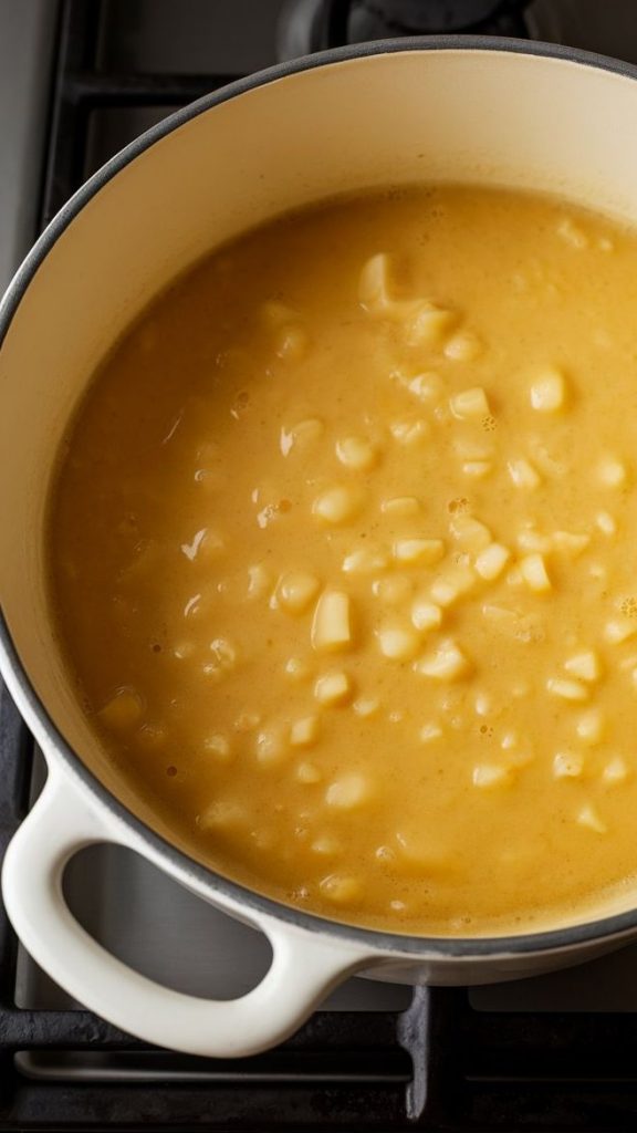 Add 4 tablespoons butter to the pot and let it melt. Stir in 4 tablespoons all-purpose flour, whisking for about 1 minute until smooth and golden.