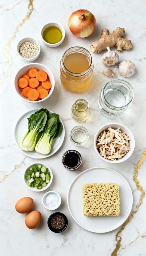 Simmering the garlic, ginger, and onion in sesame oil helps pull out their deep aroma and flavor, giving the broth a savory base. Ramen noodles cook super fast, and tossing them in last keeps them from going mushy. Baby bok choy steams gently in the broth, staying tender but crisp. And that soy sauce + rice vinegar combo adds umami with just a little tang.