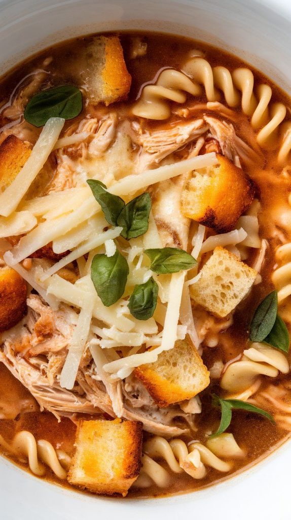 This innovative soup turns the flavors of chicken parmesan into a warm bowl with tomato broth, cheese, and tender chicken. It’s hearty and comforting with familiar Italian flavors that feel rich without being heavy. Using the crockpot makes it easy to prepare ahead and enjoy later with minimal cleanup.