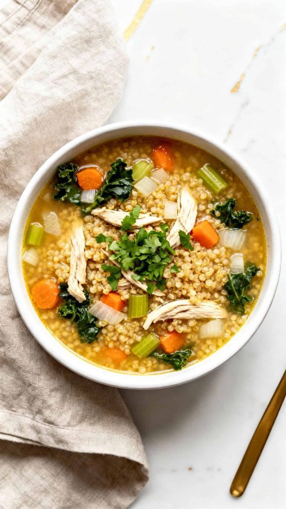 This slow cooker recipe makes life easy by letting your crockpot do the work while you go about your day. It combines chicken with quinoa and vegetables in a savory broth that’s both nourishing and satisfying. Quinoa adds extra protein and texture, making this a hearty choice for lunches or dinners all week long.
