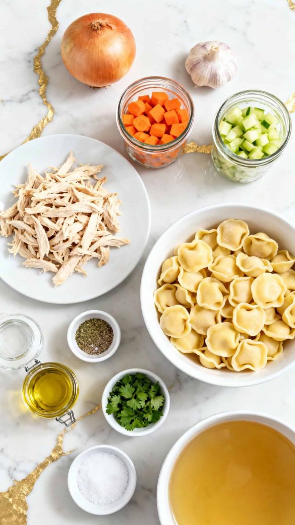 This recipe takes me back to Sunday afternoons growing up — my mom would make chicken soup, and I’d help by tossing in pasta or chopping veggies. Now, I make this twist with tortellini because it makes it even more filling and fun.