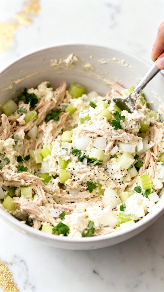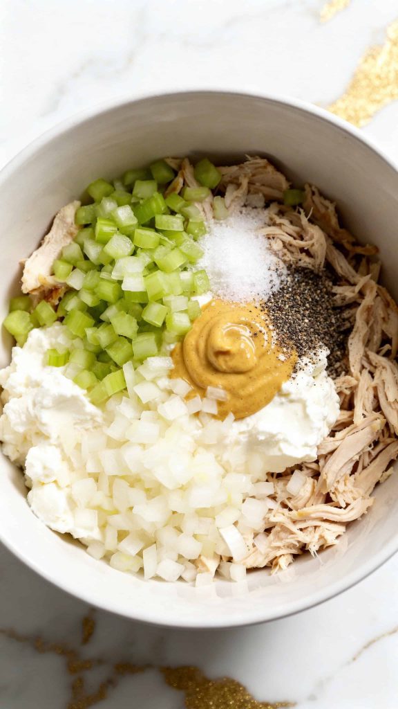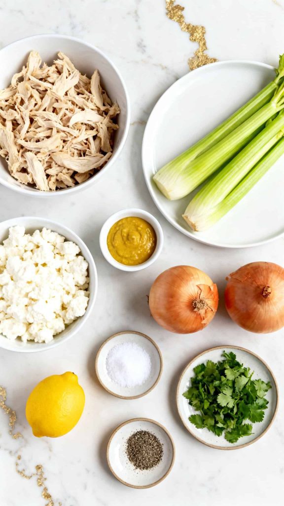 Cottage cheese is full of protein and has a natural creaminess from its curds. When mixed, it creates a thick base that coats the chicken like mayo would, but with less fat. The lemon juice adds brightness, while the mustard helps bring all the flavors together.