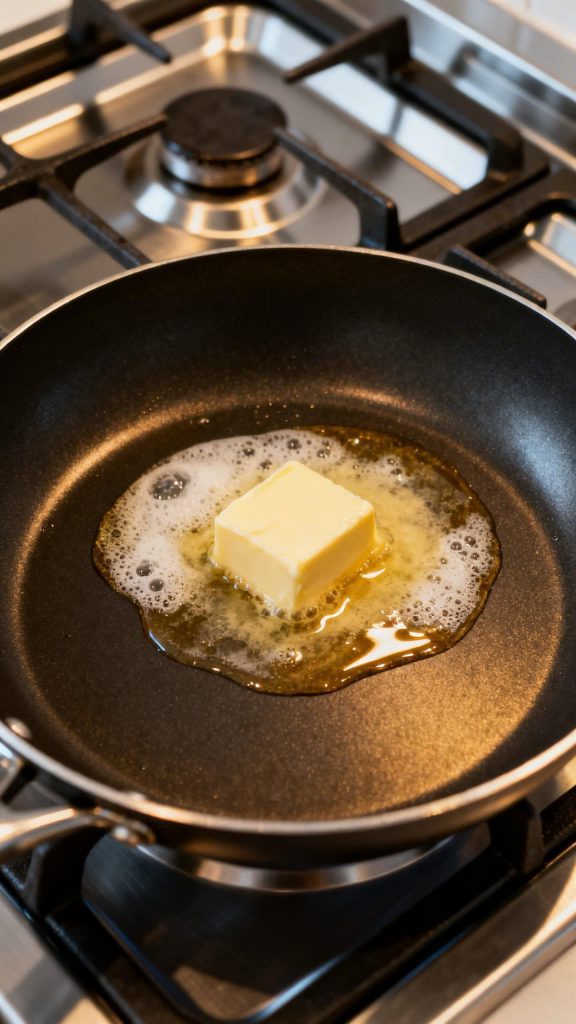 Place a pan over low heat and add 1 tablespoon butter. Let it melt slowly without browning.