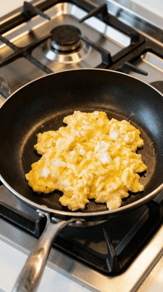 Cottage cheese adds moisture and protein. As the eggs cook, the cheese melts into them, making the texture softer and preventing dryness. Cooking on low heat keeps the proteins from tightening too fast, which keeps the eggs tender instead of rubbery.