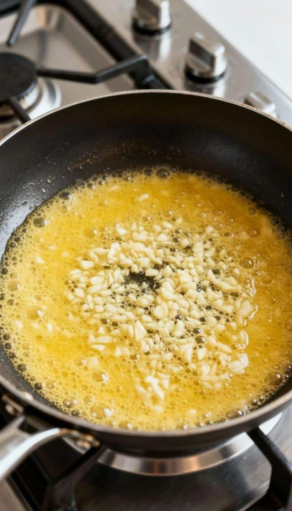 In the same pan melt 2 tablespoons butter Add 4 minced garlic cloves and cook for 30 seconds until fragrant