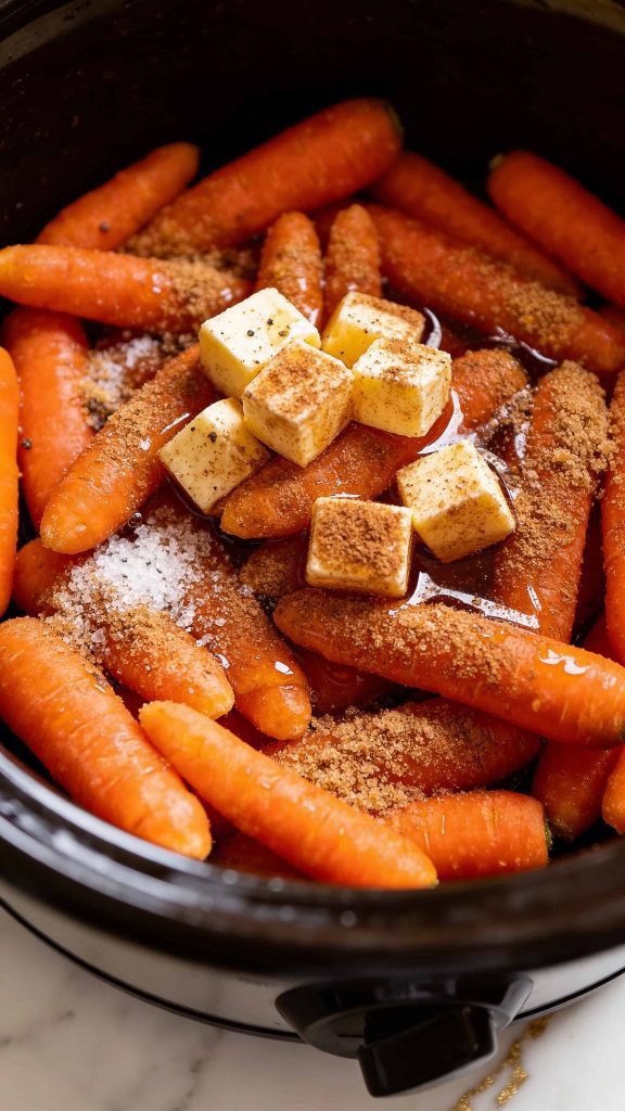 Slow cooking lets the carrots gently break down and soften without losing moisture. The butter and sugar melt together to form a smooth glaze, while the honey adds a slight stickiness that helps it coat every piece. The low heat keeps everything from burning, so the sugars caramelize just enough for that rich flavor.