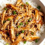 - Slow cooking breaks down the chicken, making it fall-apart tender.