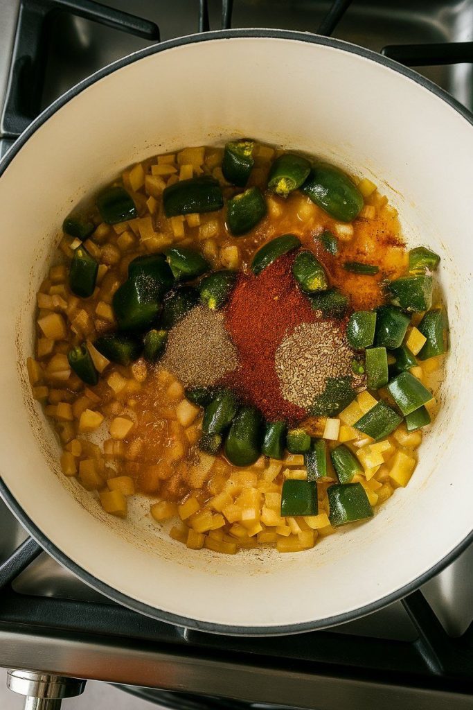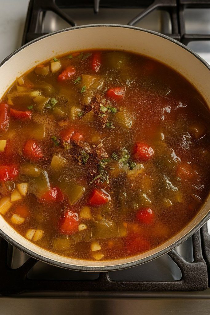 Poblano peppers add natural smokiness without being spicy, and sautéing them with onions brings out their flavor. The combination of cumin, chili powder, and oregano gives the soup a balanced seasoning base. Fire-roasted tomatoes add depth, while lime juice at the end brightens everything up.