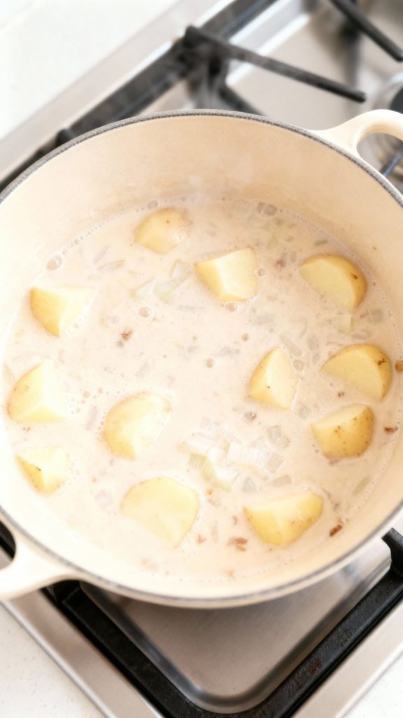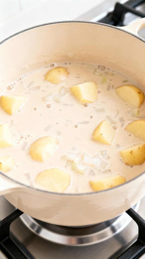 Simmer uncovered for about 12–15 minutes, or until potatoes are fork-tender.