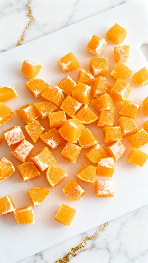 Ingredients: 2 navel oranges, peeled and cut into small cubes