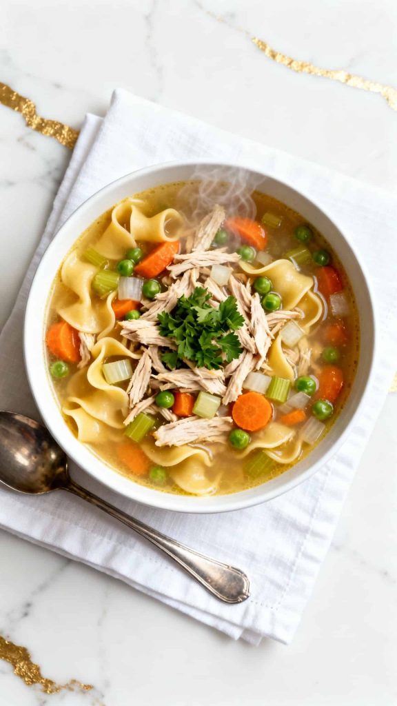This chicken soup uses bone broth for a deeper, richer base that still feels clean and nourishing. It’s filled with simple ingredients like chicken and vegetables that simmer into a cozy, balanced soup. The broth gives it a homemade feel that works well for cold days or when you want something gentle. It’s easy to make and tastes even better the next day.