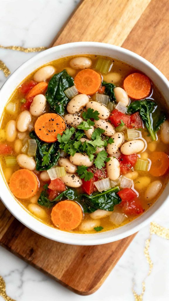 This soup feels creamy without relying on heavy ingredients. White beans blend into the broth for a smooth texture, while kale adds color and balance. It’s warm, filling, and still light enough for regular meals during winter.