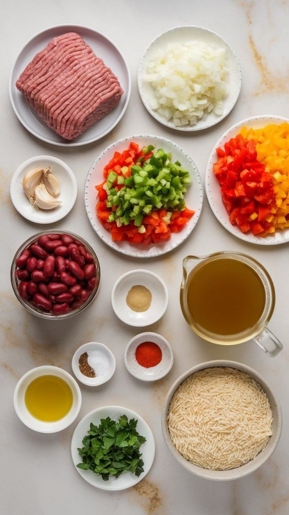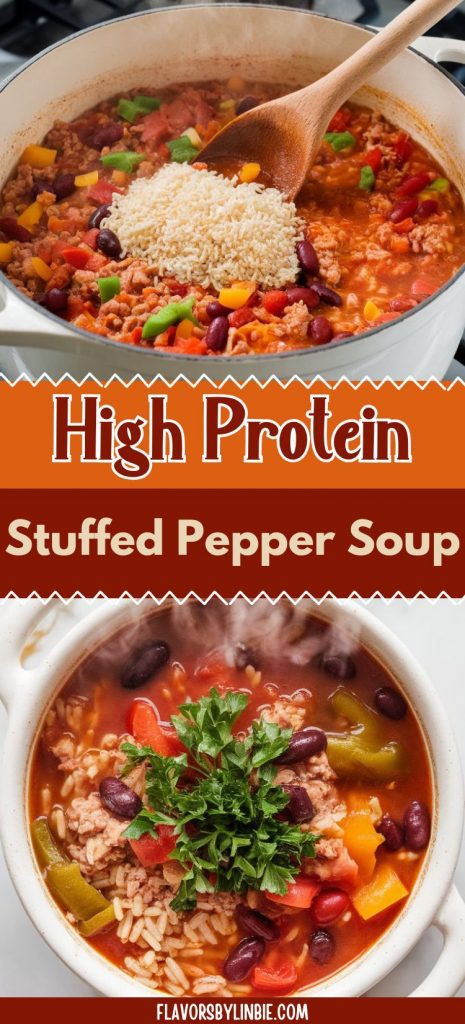 The rice soaks up the broth and releases starch, which naturally thickens the soup. The peppers simmer gently, softening without losing all their texture. Using lean ground turkey boosts protein while keeping fat low. Tomatoes add acidity, balancing the sweetness of the peppers.
