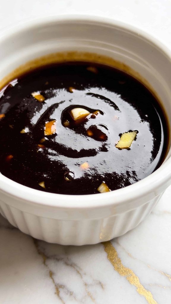 In a small bowl, mix 1/4 cup soy sauce, 2 tbsp brown sugar, 1 tbsp sesame oil, 1 tbsp gochujang, 3 minced garlic cloves, and 1 tbsp grated ginger. Stir until sugar dissolves.