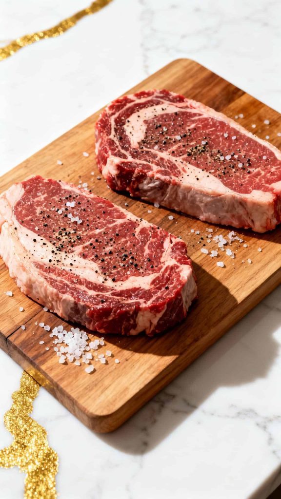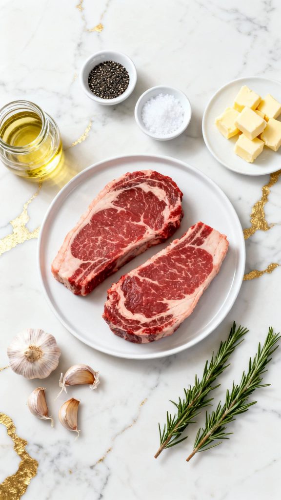 • 2 ribeye steaks (about 1 inch thick, room temperature)