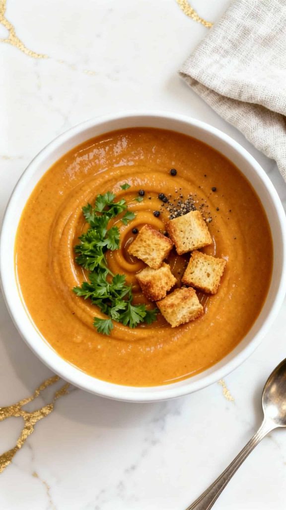 Roasting vegetables at high heat caramelizes their natural sugars, giving them a sweet, deep flavor. When blended with broth and tomato paste, it creates a rich, creamy base without any cream. The tomato paste adds umami, while dried herbs bring balance.