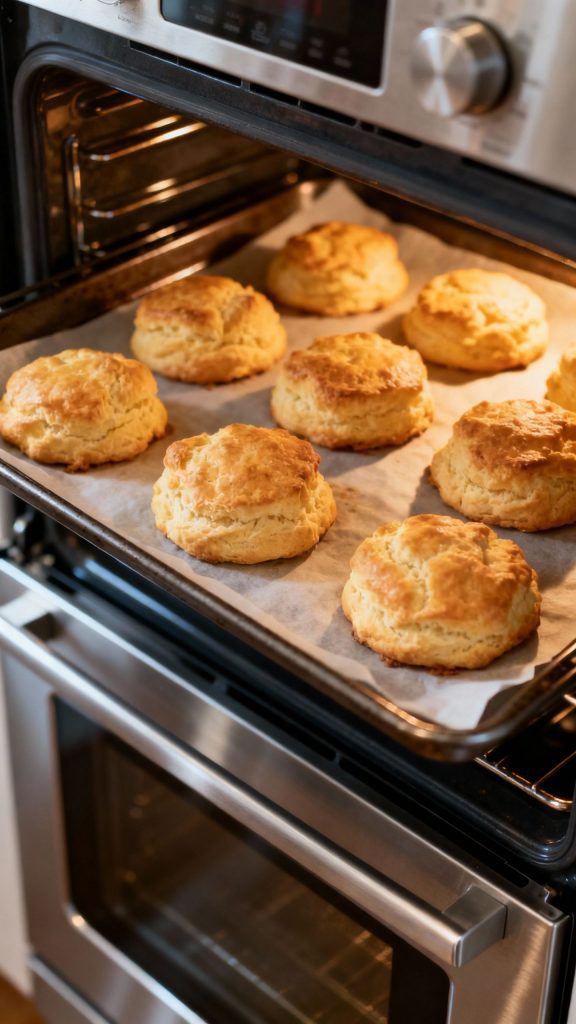 While everything finishes cooking, bake 1 can of refrigerated biscuits according to the package instructions (usually 10–12 minutes at 350°F) until golden.