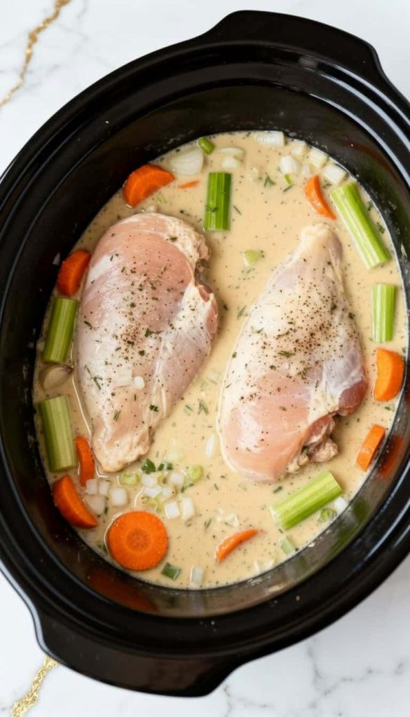 Step 1: Add Chicken and Veggies to Slow Cooker