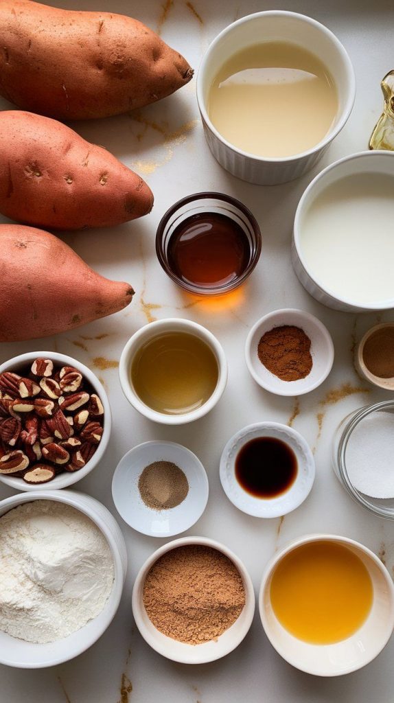 Let the casserole rest for about 10 minutes after baking, then scoop generous portions into small serving bowls or plates. Enjoy warm, with the creamy sweet potato base and crunchy pecan topping in every bite.