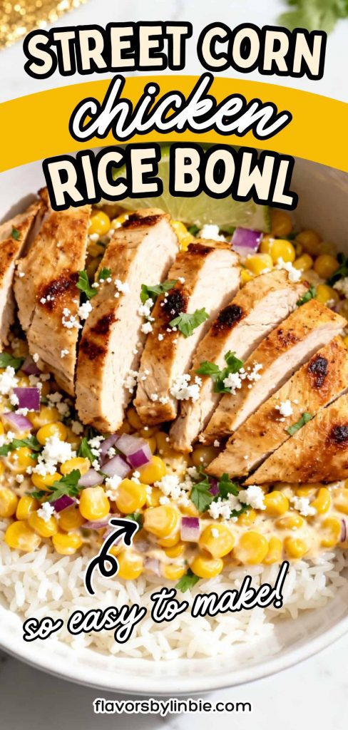 If you love bold flavors but want something simple, this Street Corn Chicken Rice Bowl is going to be your new favorite. It’s creamy, smoky, a little tangy, and so filling. I’ve made this on busy weeknights and even for small get-togethers. It always disappears fast. It tastes like street corn and grilled chicken had the best dinner idea ever.