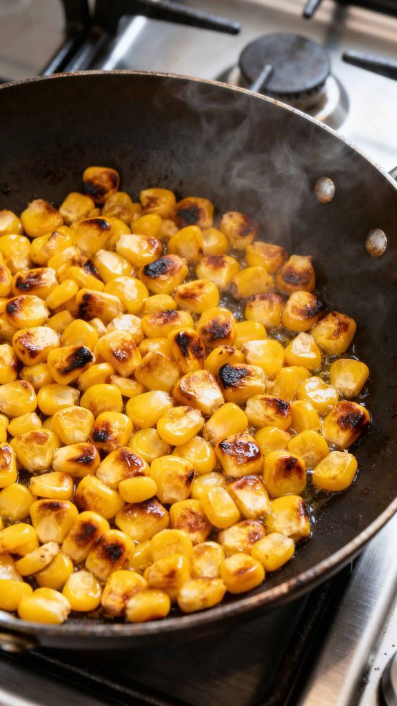 In the same skillet, add 2 cups corn kernels. Cook over medium-high heat for 5–7 minutes, stirring occasionally, until slightly charred and golden.